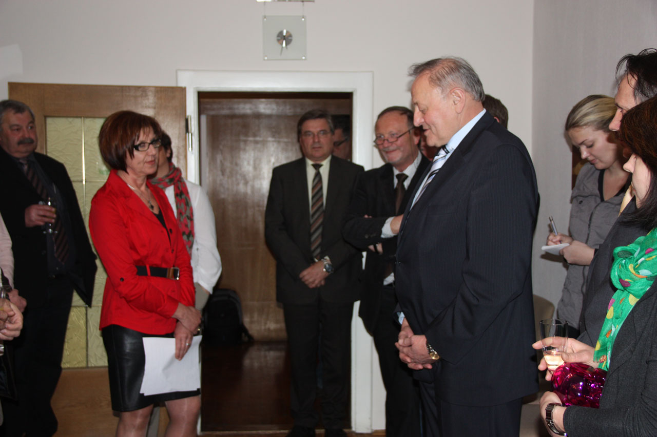 Einweihung der Geschäftsstelle in der Ludwigstraße Gäste waren unter anderem: Landrat Heinrich Trapp, Bürgermeister Josef Brunner, Kaplan Tobias Keilhofer und Bürgermeister Josef Steinberger. Nach der Einweihungsfeier gab es ein gemeinsames Essen.